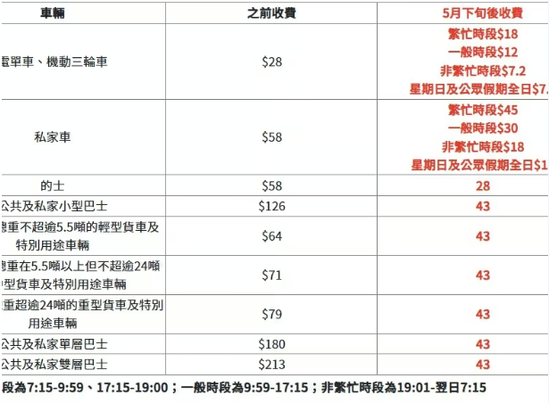 立法會最新三讀通過大欖隧道新收費方案,將於今年五月底政府收回大欖隧後實施,其中私家車繁忙時間收45元、一般時段收30元、非繁忙時間收18元。
